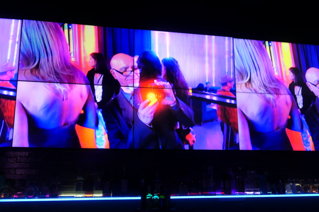 Scene: New York City Night Out with Dustin Pittman and Manhattan Magazine. Here I am taking a video with my cell phone of Dustin Pittman’s photographs wearing a Helmut Lang overcoat which was purchased at his flagship store at 80 Greene Street in Soho in 1998, BDG silver jacket, Maison Cashmere turtleneck, and Rod Keenan New York hat from Barneys on Madison Avenue. Photo Wesley Sherow.