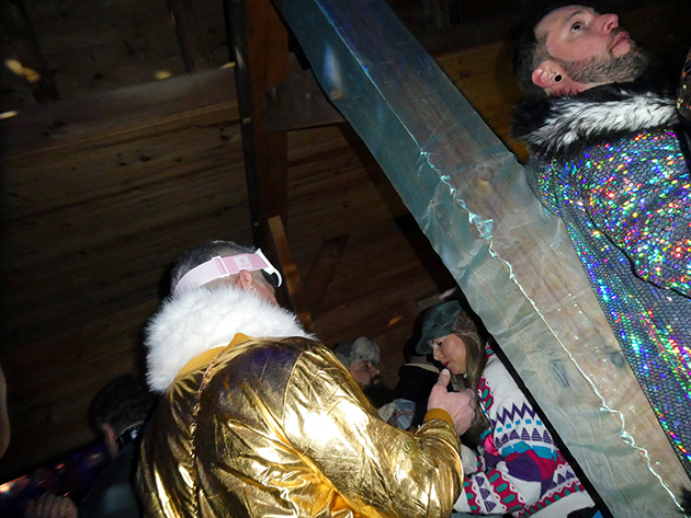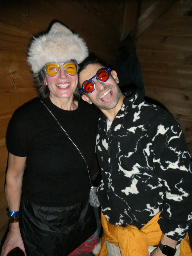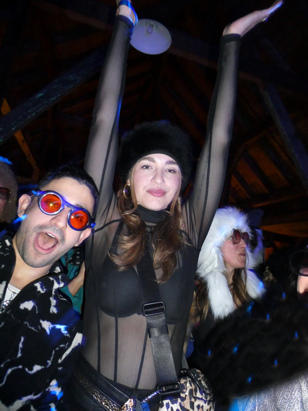 Scene: Disco Chalet Grande Soirée. Saturday night the weather was frigid upstate, but revelers dared the cold to dance and party in harmony at the après-ski Disco Chalet with lots of hatitude. The Annual Winter event took place at Inness, luxury hotel and resort, in the Event Barn, Accord NY.