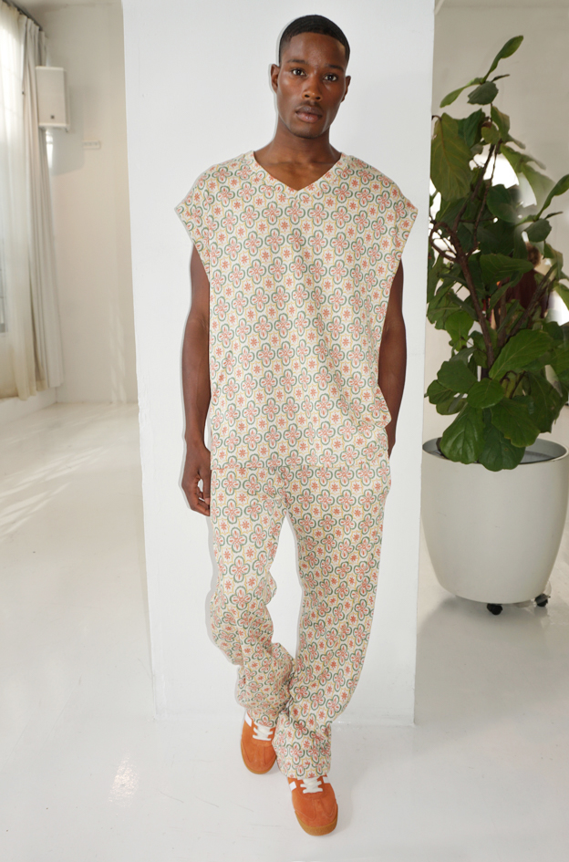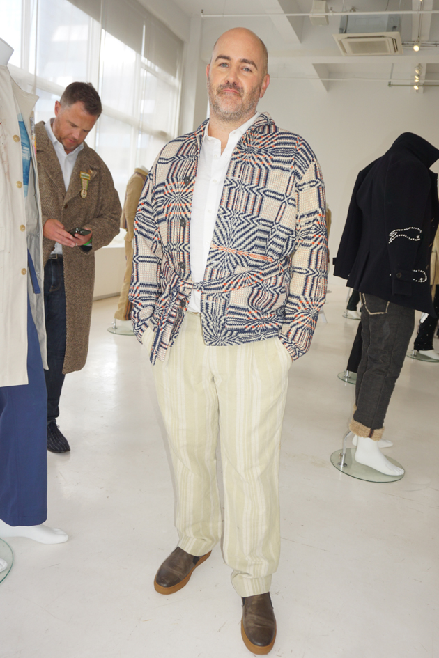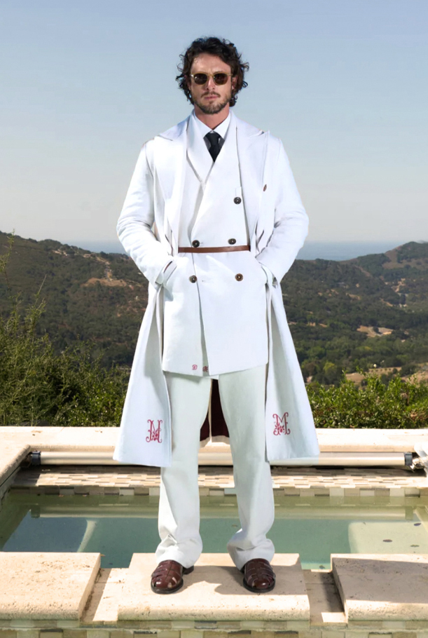 Scene: Stan Presentation. Tristan Detwiler, founder, designer, and storyteller. Stan is based in Los Angeles, hand crafting luxury menswear by transforming antique textiles and sustainable deadstock fabrics into bespoke and ready-to-wear collections. His collections are from 100% sustainable materials. Stan blends global heritage with Southern California’s laid-back sophistication, creating garments that carry the stories of history into the vibrant present. Stan is a West Coast atelier where stories are woven into every thread. Tristan breathes new life into rare, antique textiles.