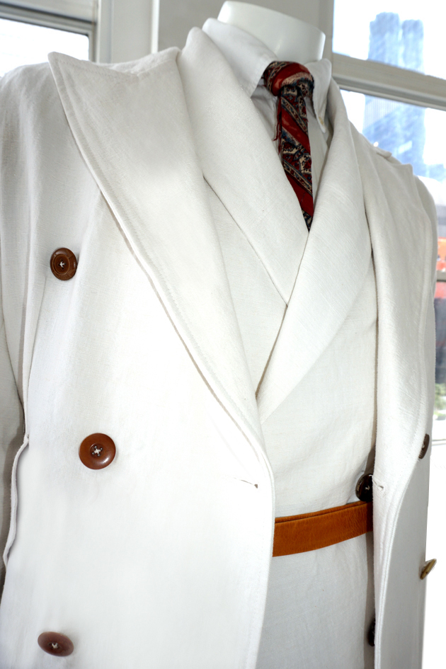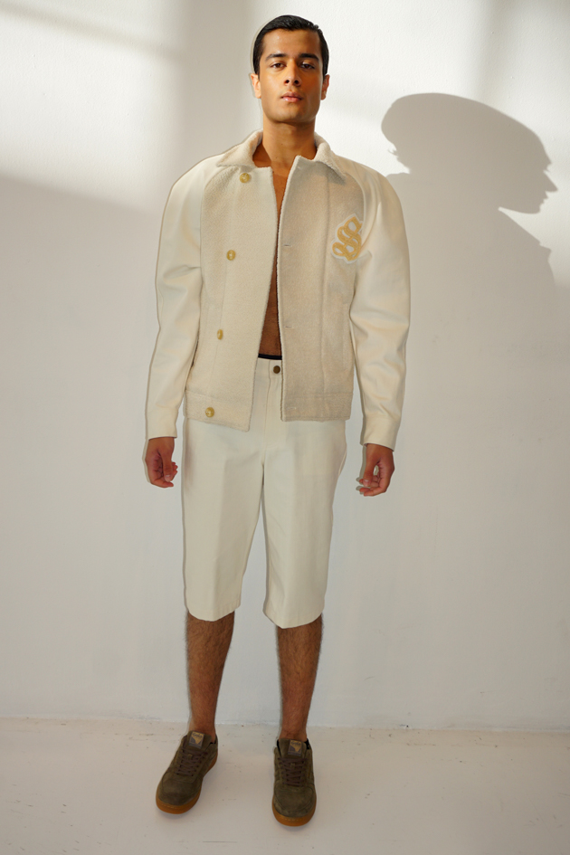 Scene: Stan’s white on white ensemble from 100% sustainable materials hand crafted in Los Angeles. Tristan Detwiler model.