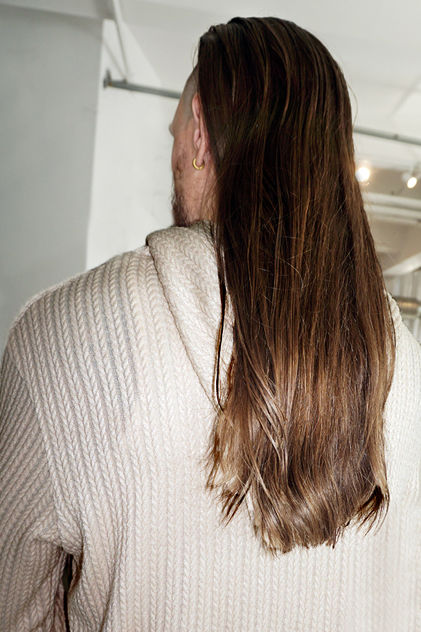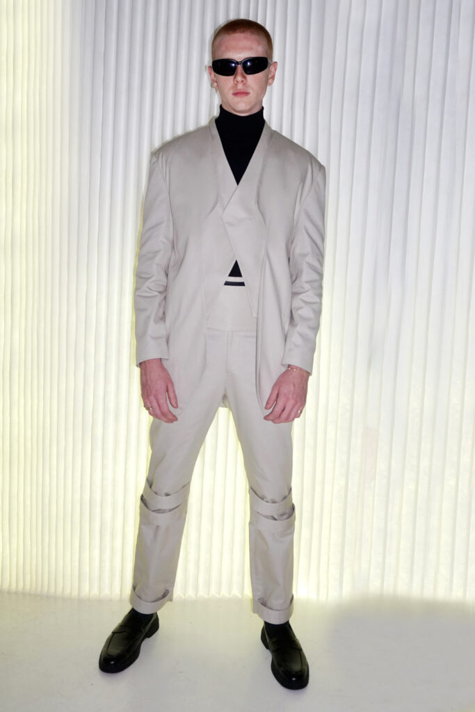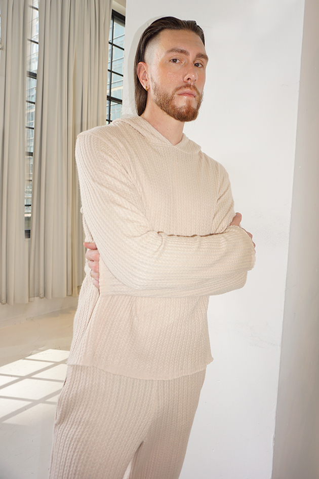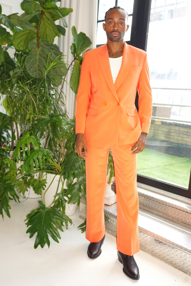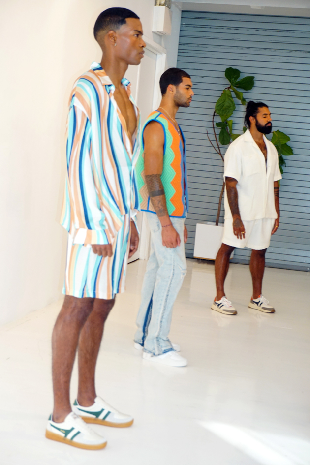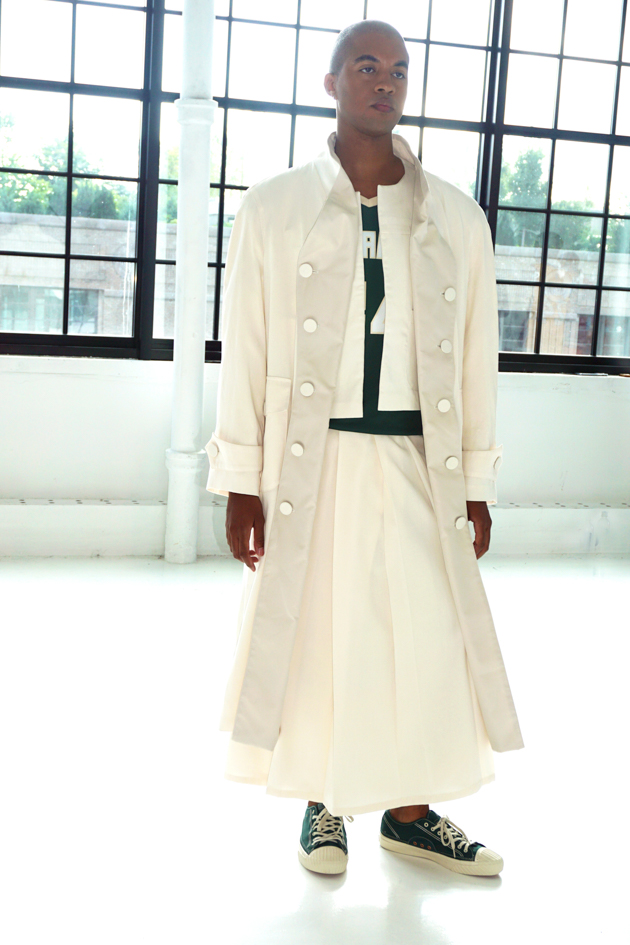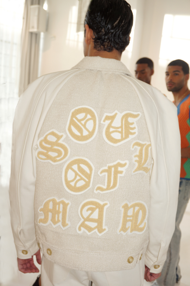 Scene: Sermon Series’ “Spirit, Soul, Body” Presentation. Santanna “Saint” Hayes co-created the men’s fashion brand with designer DeKylen Tormier. The 14 look collection drew inspiration from the purity of the human ‘Spirit’ represented by foundational cream colors. The complex and diverse nature of the human ‘Soul’ was represented by varying patterns, textures, colors, and silhouettes. The ‘Body’ was represented through the sustainable and eco-conscious elements and processes used in the majority of their pieces. Sermon Series, a sustainable, luxury men’s brand, is a fusion of spiritual truths and the boundless canvas of fashion. The designers channel a connection to what keeps us grounded. Divine inspiration meets contemporary fashion.