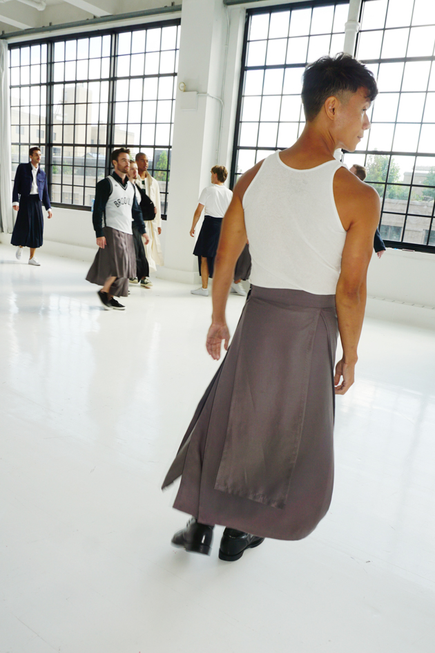Scene: Terry Singh’s Presentation. New York City designer Terry Singh is reshaping how the world views masculinity. His trip to India was so life changing that it inspired him to recreate this liberated feeling through a skirt inspired by the dhoti. “This collection is not just about clothes, but about breaking free from repetition and embracing a new chapter of creativity and connection.” Terry said.