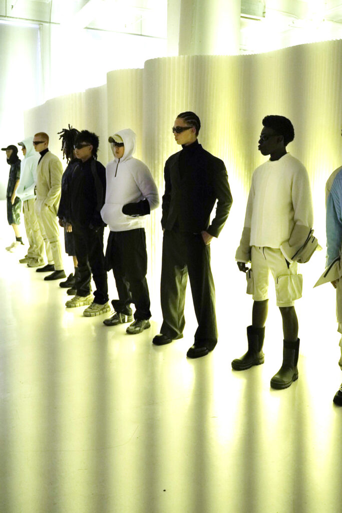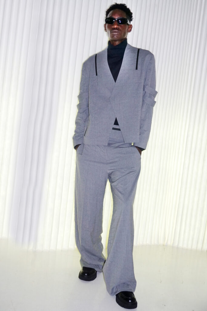 Talent for the show: Key Hairstylist Kien Hoang and team for Oribe, Key Makeup Artist Michelle Webb, and team for Augment Tokyo, team support Academy of Freelance Makeup, Head Stylist D. Jones for DRJSPOKESTYLE LLC, Beard Grooming King by Ruckers, Footwear Gola Classics.