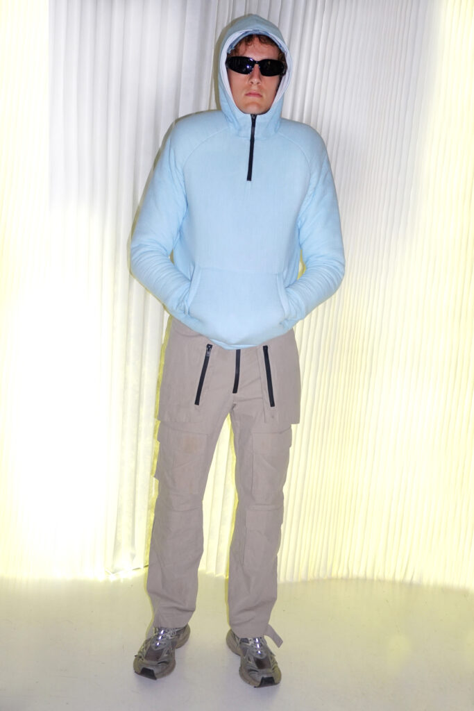 Scene: Tarpley’s “Aura” Presentation. Creative Director Tarpley Brooks Jones’ mission is to create the worlds most compelling luxury fashion by accelerating the worlds transition to sustainable energy. The founder and designer, expresses his “buddhist tech minimalism” point of view through garments noted by razor sharp cuts, creating minimal but extremely elegant silhouettes in high-tech fabrics with luxury quality craftsmanship. Every garment, accessory, and experience starts with how they can create something positive for the earth with the lowest impact. The emphasis is on material, high end production, and timeless design. They aim to create clothing that can live within your life forever.