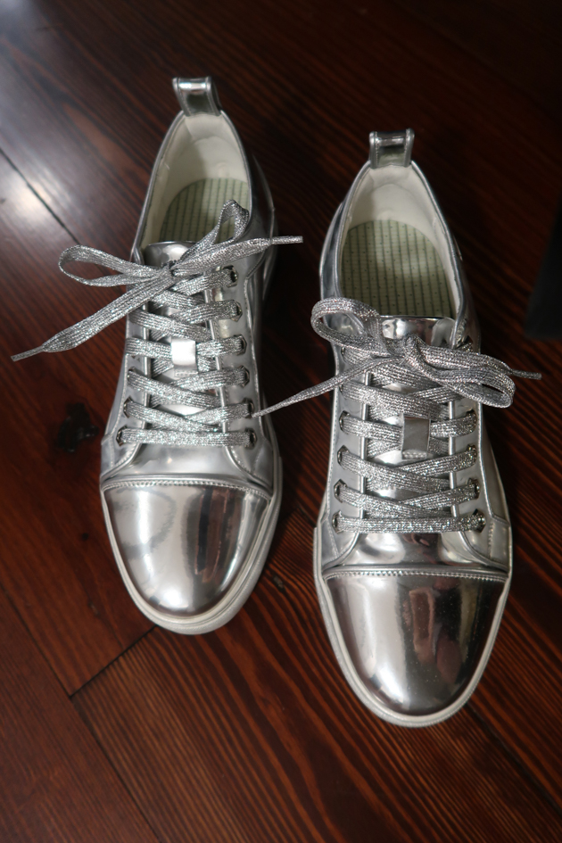 Scene: My new silver sneakers which I purchased to rock and wear to Roller Disco.
