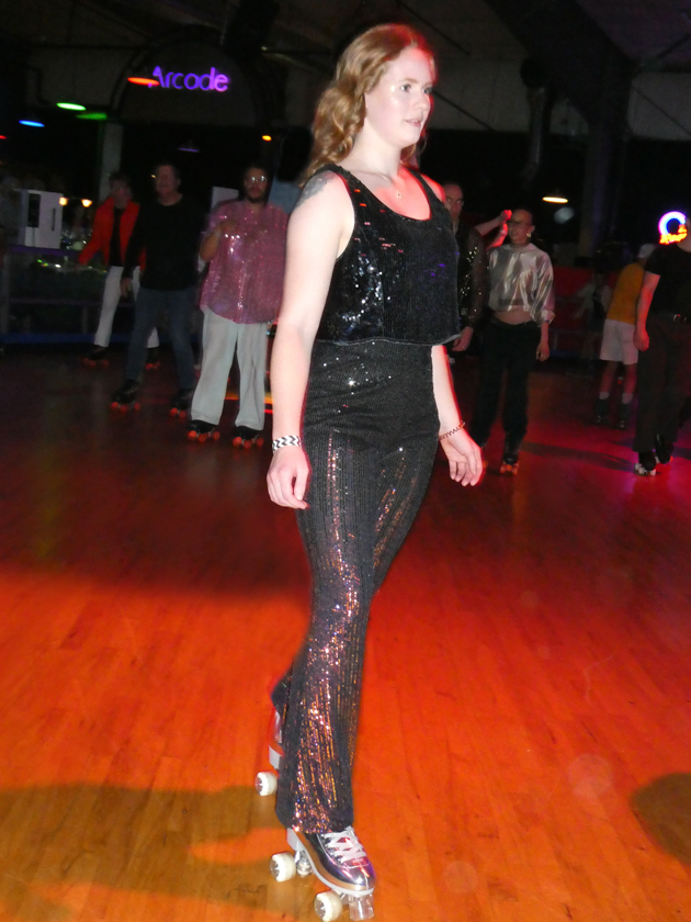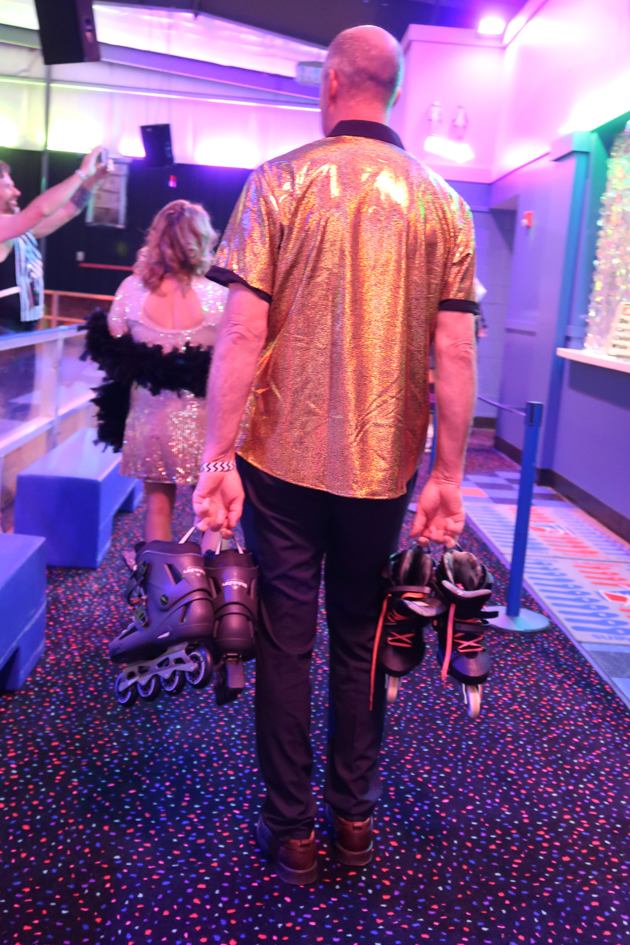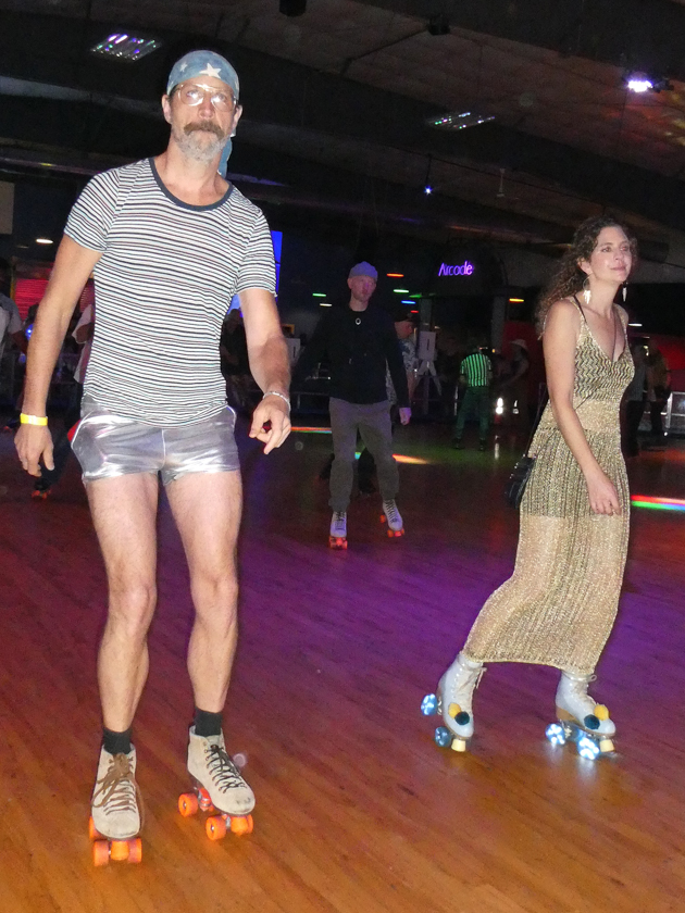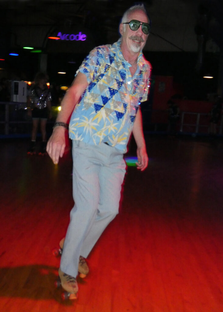 Scene and Heard: Roller Disco, Saturday night in Upstate NY at Skate Time for the 7th Annual Event with master of ceremonies Sean B Nutley! Silvers and golds glistened, accented with vivid colors and hues as the disco beat sang through the venue. The subtle sheen and luster of blacks shimmered. Denim, leopard, lace, and patterns too. Knee high socks with 70s basketball jerseys and shorts. City and country folks came together as happy people to roller skate and party with the sound of disco emanating. The night was bright for vibrant times. “Ain’t No Stoppin’ Us Now.”